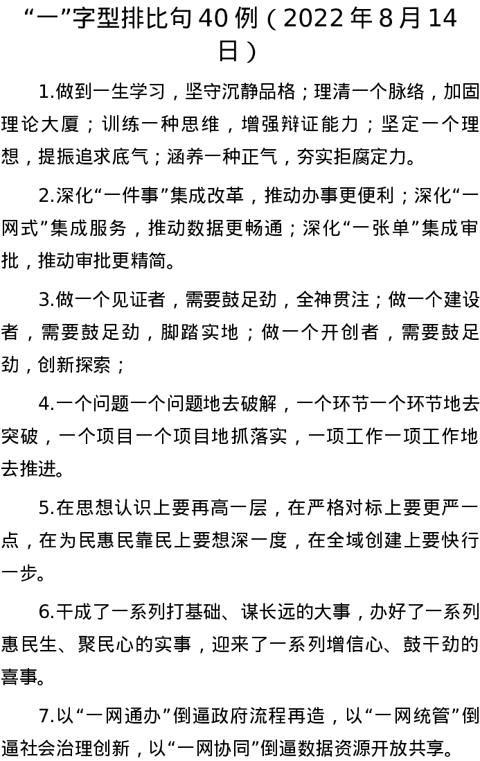 20220814【写作素材】“一”字型排比句40例(2022年8月14日)