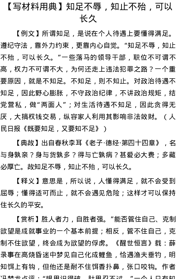 20220814【写作素材】【写材料用典】知足不辱,知止不殆,可以长久