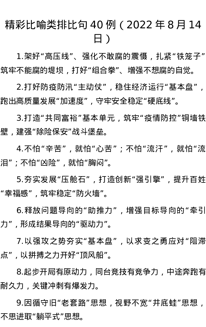 20220814【写作素材】精彩比喻类排比句40例(2022年8月14日)