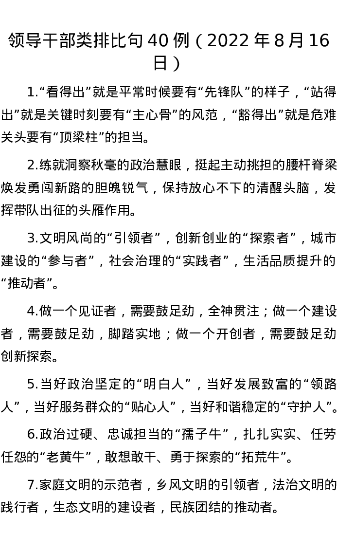 20220816【写作素材】领导干部类排比句40例(2022年8月16日)