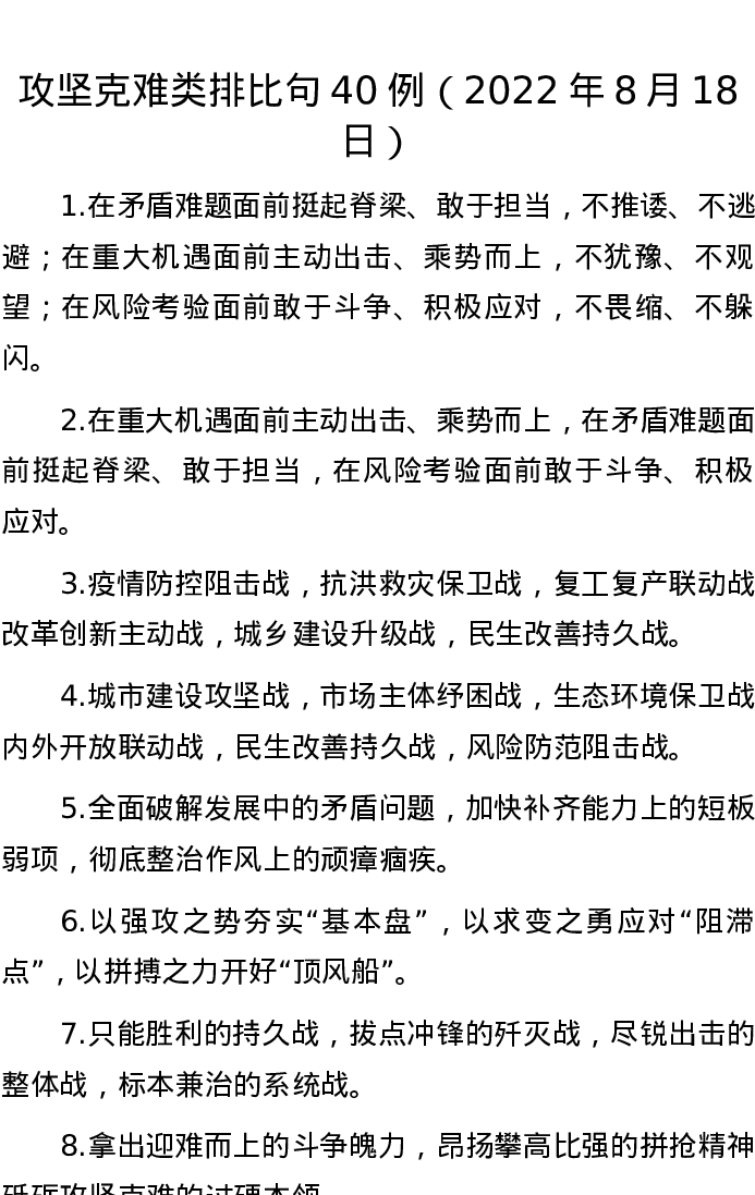 20220818【写作素材】攻坚克难类排比句40例(2022年8月18日)