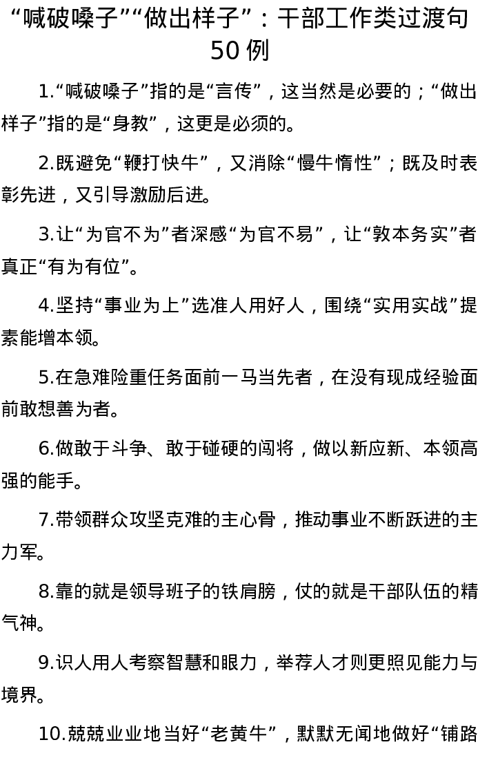 20220819【写作素材】“喊破嗓子”“做出样子”:干部工作类过渡句50例