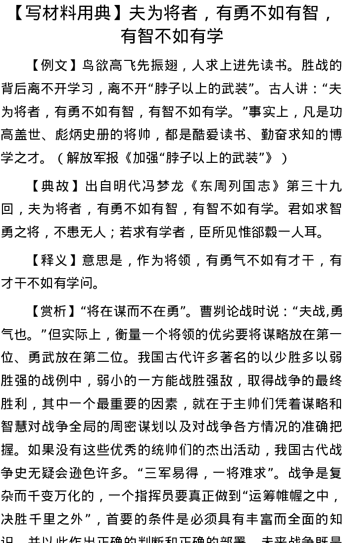 20220819【写作素材】【写材料用典】夫为将者,有勇不如有智,有智不如有学