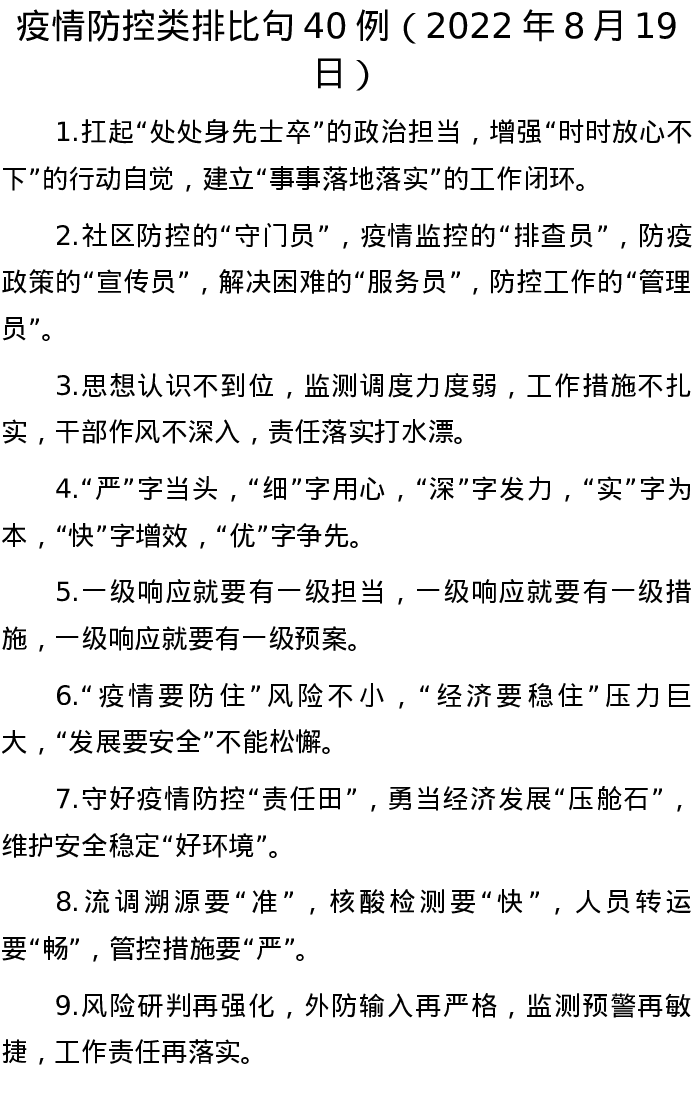 20220819【写作素材】疫情防控类排比句40例(2022年8月19日)