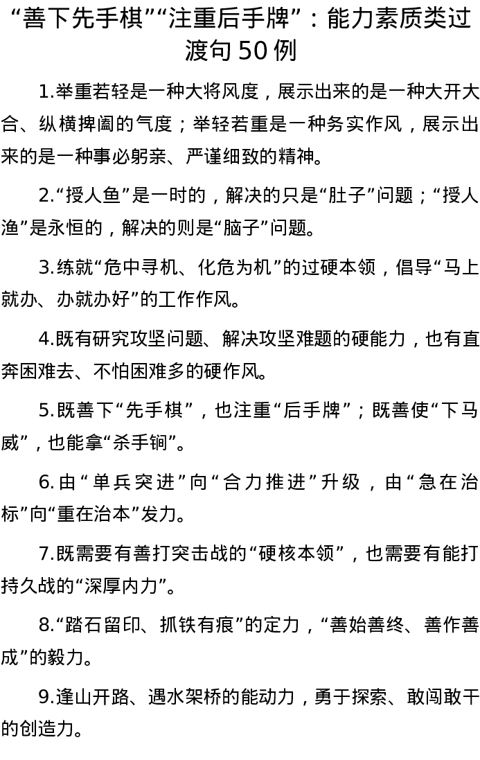 20220820【写作素材】“善下先手棋”“注重后手牌”:能力素质类过渡句50例