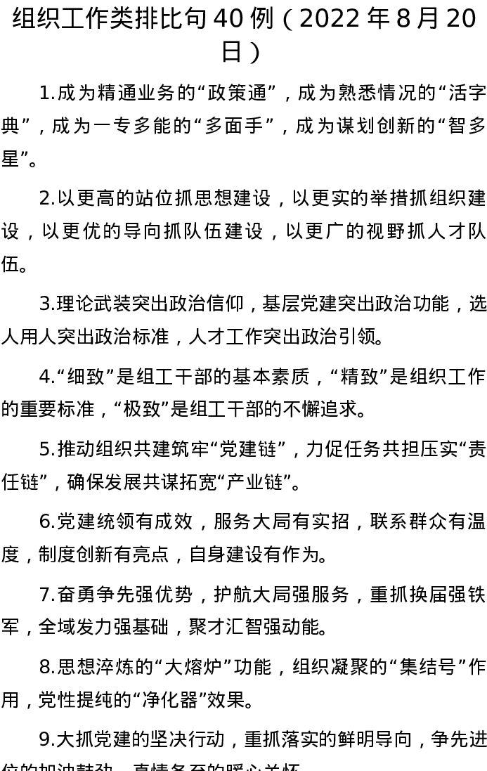 20220820【写作素材】组织工作类排比句40例(2022年8月20日)