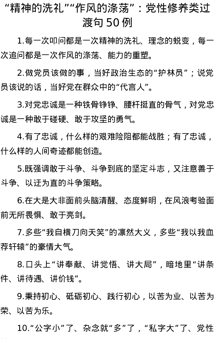 20220821【写作素材】“精神的洗礼”“作风的涤荡”:党性修养类过渡句50例