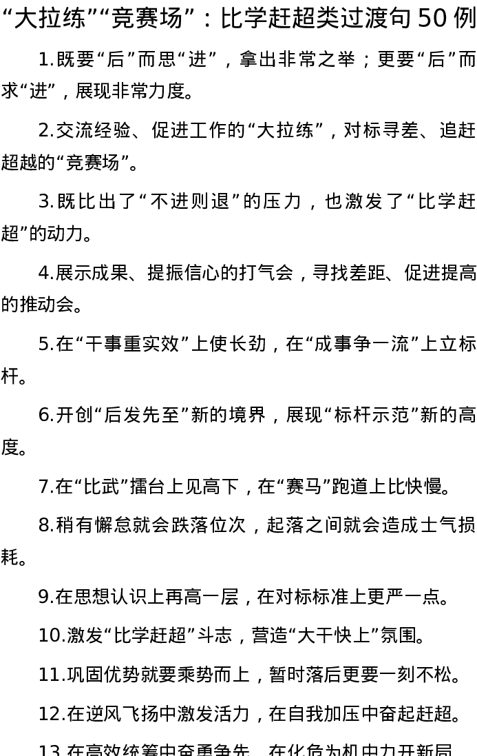 20220822【写作素材】“大拉练”“竞赛场”:比学赶超类过渡句50例