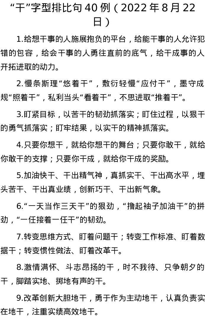 20220822【写作素材】“干”字型排比句40例(2022年8月22日)